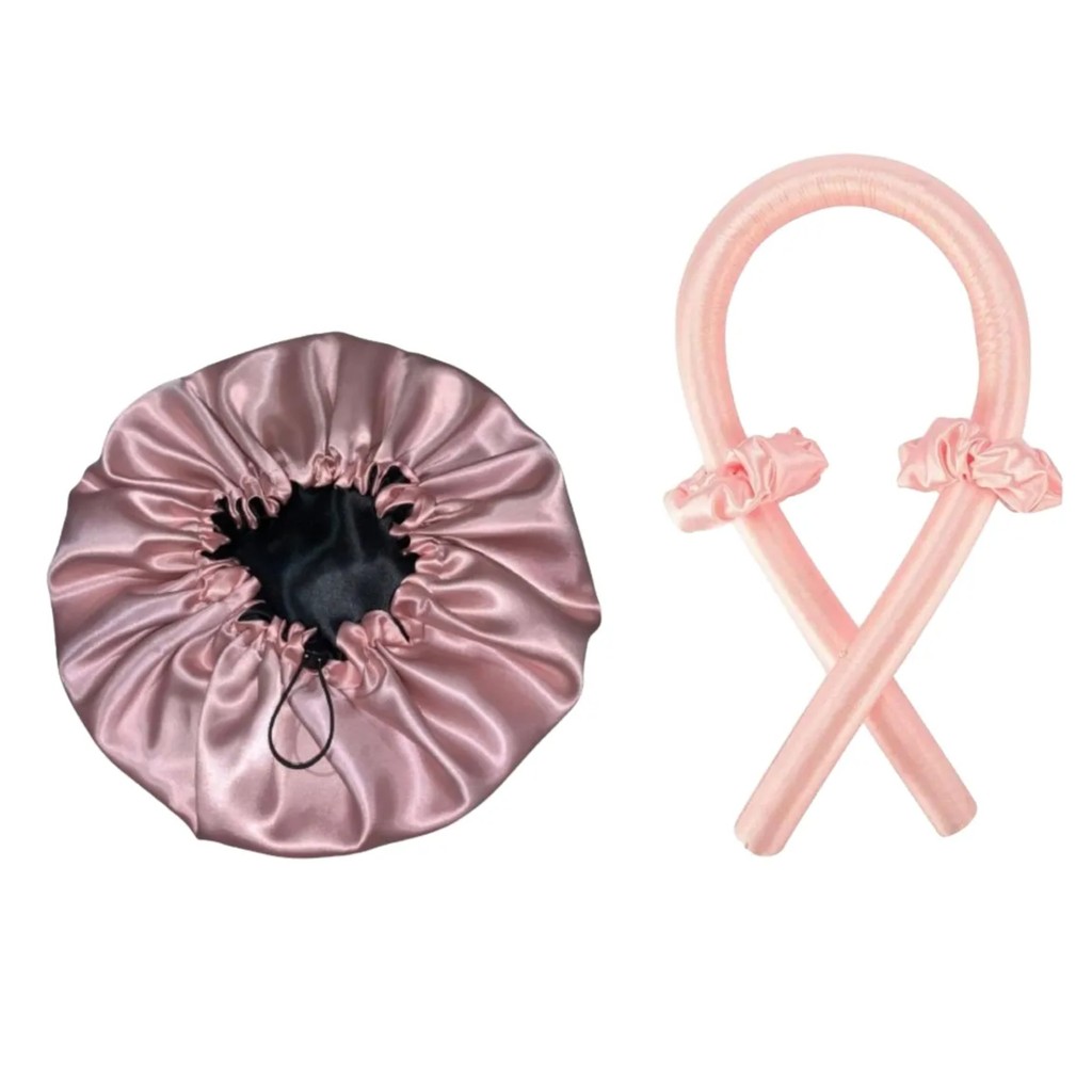 Kit Com Modelador De Cachos + Touca Cetim Dupla Face Com Regulador