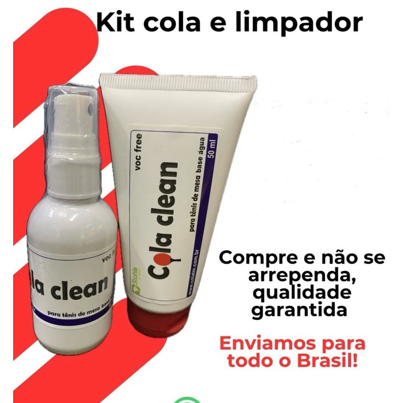 Kit contendo uma Cola Clean Para Tênis de Mesa e um limpador para borracha de 60ml.