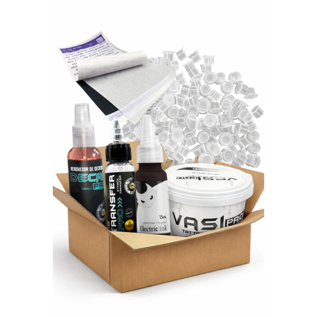Kit combo materiais de tatuagem vaselina transfer tinta papel hectográfico e batoque