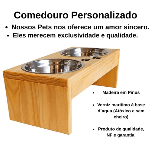 🐾 Comedouro e Bebedouro Pet Duplo Elevado Ergonômico – Cachorro e Gato 🐶🐱 Garanta mais conforto, saúde e estilo para o seu pet com este comedouro e bebedouro duplo elevado. Feito em madeira pinus envernizada e com vasilhas de inox, é a combinação perfeita entre design, qualidade e bem-estar animal. ✅ Características do Produto: ✔ Fabricado em madeira pinus maciça de reflorestamento ✔ Acabamento em verniz base água (atóxico e sustentável) ✔ Tinta PVA à base de água, segura para pets ✔ Vasilhas de inox inclusas ✔ Design ergonômico e moderno, que combina com qualquer decoração 🐕🦺 Benefícios para o seu Pet: ✔ Melhora a postura durante a alimentação ✔ Facilita a digestão e absorção de oxigênio ✔ Indicado por veterinários para cães e gatos de pequeno e médio porte ✔ Ideal para pets com artrite ou dores articulares ✔ Evita que água e ração caiam fora das tigelas ✔ Proporciona alimentação mais higiênica e confortável 🌳 Diferenciais do Nosso Produto: ✔ Madeira maciça e resistente com excelente acabamento ✔ Produção ecologicamente correta ✔ Alta durabilidade e estabilidade ✔ Envio super rápido ✔ Produto artesanal com comedouros entalhados na madeira 📏 Tamanhos Disponíveis: 🦴 Pequeno: Altura: 10 cm Largura: 17 cm Comprimento: 33 cm 2 Vasilhas de Inox 400 ml (Ø 13 cm) 🦴 Médio: Altura: 15 cm Largura: 20 cm Comprimento: 42 cm 2 Vasilhas de Inox 800 ml (Ø 18 cm) 🦴 Grande: Altura: 30 cm Largura: 25 cm Comprimento: 50 cm 2 Vasilhas de Inox 1.500 ml (Ø 23 cm) 🦴 20 cm de Altura: Altura: 20 cm Largura: 20 cm Comprimento: 42 cm 2 Vasilhas de Inox 800 ml (Ø 18 cm) 🦴 25 cm de Altura: Altura: 25 cm Largura: 20 cm Comprimento: 42 cm 2 Vasilhas de Inox 800 ml (Ø 18 cm) 🚚 Envio Rápido e Seguro Todos os pedidos são enviados com embalagem reforçada e despacho ágil! 💬 Dúvidas? Fale conosco pelo chat — teremos prazer em ajudar!