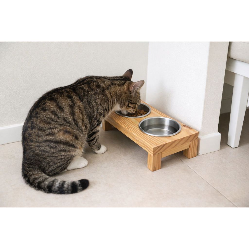 🐶🐱 Comedouro Elevado em Madeira Pinus Tratada – Mais Saúde, Conforto e Estilo para o seu Pet Transforme a hora da refeição em um momento muito mais confortável e saudável para o seu pet 💙 Nosso comedouro elevado é produzido em madeira pinus tratada, material resistente, durável e de fácil limpeza, podendo ser lavado, ideal para quem busca praticidade sem abrir mão da estética. O design elevado foi pensado para oferecer mais conforto, melhor postura e auxílio na digestão, sendo indicado tanto para cães quanto para gatos de pequeno e médio porte. 🔹 Acompanha 2 vasilhas de alumínio 🔹 Capacidade: 300ml cada vasilha 🔹 Material resistente e higiênico 🔹 Visual moderno que combina com qualquer ambiente da casa 🐾 Principais Benefícios do Comedouro Elevado: ✔️ Melhora a digestão e a postura: o pet não precisa abaixar tanto a cabeça, reduzindo a pressão no pescoço, ombros e articulações, facilitando a passagem do alimento pelo esôfago. ✔️ Mais conforto para pets idosos ou com dores articulares: ideal para animais que sentem desconforto ao se curvar até o chão, proporcionando mais qualidade de vida. ✔️ Redução de engasgos, refluxo e gases: a posição mais natural do pescoço ajuda o pet a engolir com mais facilidade. ✔️ Mais higiene e organização: os potes elevados evitam contato com poeira e sujeira do chão, mantendo o local da alimentação mais limpo. ✔️ Evita que o pet pise ou espalhe a comida: perfeito para filhotes e pets mais agitados. ✔️ Altura ideal: projetado para manter o comedouro aproximadamente na altura do peito ou cotovelo do animal, garantindo maior conforto durante a refeição. 📏 Medidas do Comedouro: * Comprimento: 30 cm * Largura: 14 cm * Altura: 8 cm 💙 Uma peça linda, funcional e pensada nos mínimos detalhes para o bem-estar do seu pet. 🛒 Garanta já o seu e proporcione mais saúde e conforto todos os dias!