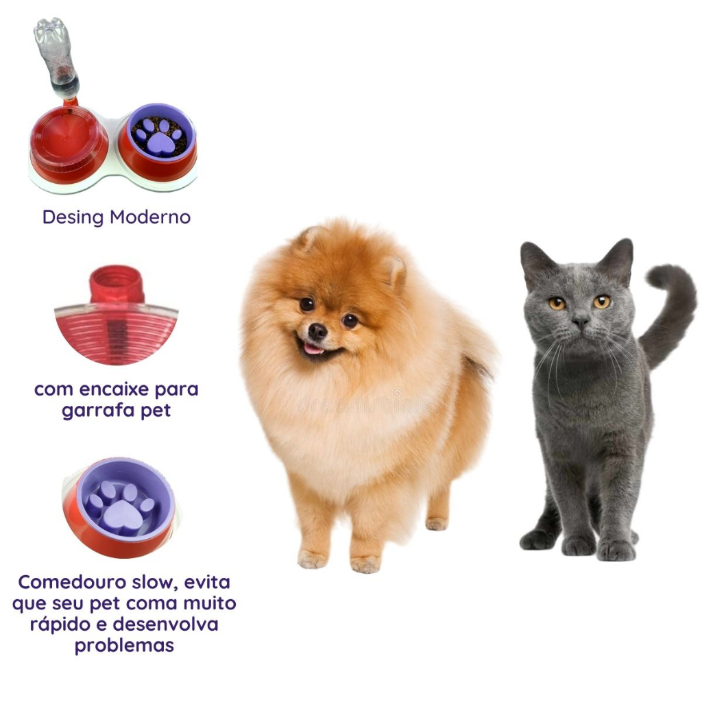 Kit Comedouro Lento e Bebedouro Automático para Cães