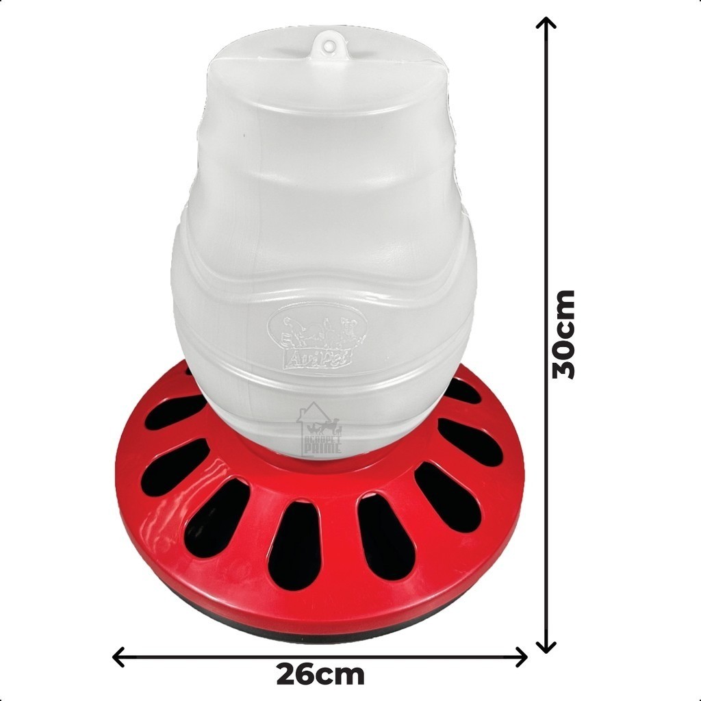 Comedouro 3,5 LITROS 12 Furos Automático + Bebedouro 3,5 LITROS Foto real do produto O modelo é exatamente como na foto porém as cores podem variar Comedouro Inteligente para Aves 2,7KG e Bebedouro 3,5 Litros MEDIA com Sistema Anti desperdício e Versatilidade ITENS INCLUSOS 1 UNIDADE COMEDOURO 2,7KG ROSCA + 1 UNIDADE BEBEDOURO 3,5L ROSCA Comedouro Inteligente de 2,7KG Essencial para atender às necessidades alimentares das suas aves de forma eficiente e econômica. Projetado com características inovadoras este comedouro oferece praticidade redução de desperdício e versatilidade incomparáveis tornando-o indispensável para criação de frangos galinhas pavões codornas e muitas outras aves em sua granja sítio fazenda ou instalação de avicultura. SISTEMA ANTIDESPERDÍCIO Com o mecanismo de regulagem o comedouro é projetado para liberar uma quantidade controlada de ração à medida que as aves se alimentam evitando desperdícios e garantindo que suas aves recebam apenas a quantidade necessária ADAPTAÇÃO A DIFERENTES ESPÉCIES Compatível com uma ampla variedade de aves desde frangos e galinhas até faisões e pássaros livres O comedouro se ajusta às necessidades de diferentes tamanhos e tipos de aves VERSATILIDADE DE USO A base robusta permite que o comedouro seja colocado no chão oferecendo fácil acesso às aves em suas atividades diárias. Além disso as alças integradas possibilitam a opção de pendurá-lo mantendo o ambiente mais limpo e organizado. SISTEMA DE PRATO COM ROSCA A inovadora base com rosca assegura que o prato do comedouro permaneça fixo e estável mesmo quando as aves se alimentam Isso reduz a chance de derramamentos e garante que a ração fique sempre acessível. PROMOVE ALIMENTAÇÃO SAUDÁVEL Com o controle de porções você proporciona às suas aves uma alimentação equilibrada e saudável evitando o excesso e garantindo que todas recebam sua parte justa. DURABILIDADE E FACILIDADE DE LIMPEZA Fabricado com materiais de alta qualidade o comedouro é resistente e duradouro Além disso seu design desmontável facilita a limpeza mantendo a higiene e a saúde das aves. INOVAÇÃO PARA CUIDADOS AVANÇADOS Este comedouro representa um avanço na criação de aves tornando o processo de alimentação mais eficiente e econômico enquanto mantém o bem estar das aves em foco. O Comedouro Inteligente de 2,7KG é a escolha ideal para criadores que buscam otimizar a alimentação de suas aves Proporcione refeições precisas sem desperdícios e com total conveniência Invista no cuidado de suas aves e colha os benefícios de uma alimentação controlada e eficaz."