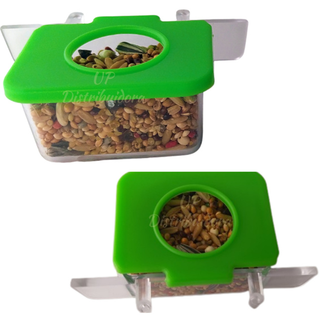 Kit Comedouro Plastico Lateral c/ Tampa 1 furo 35ml - Passaros e aves em geral