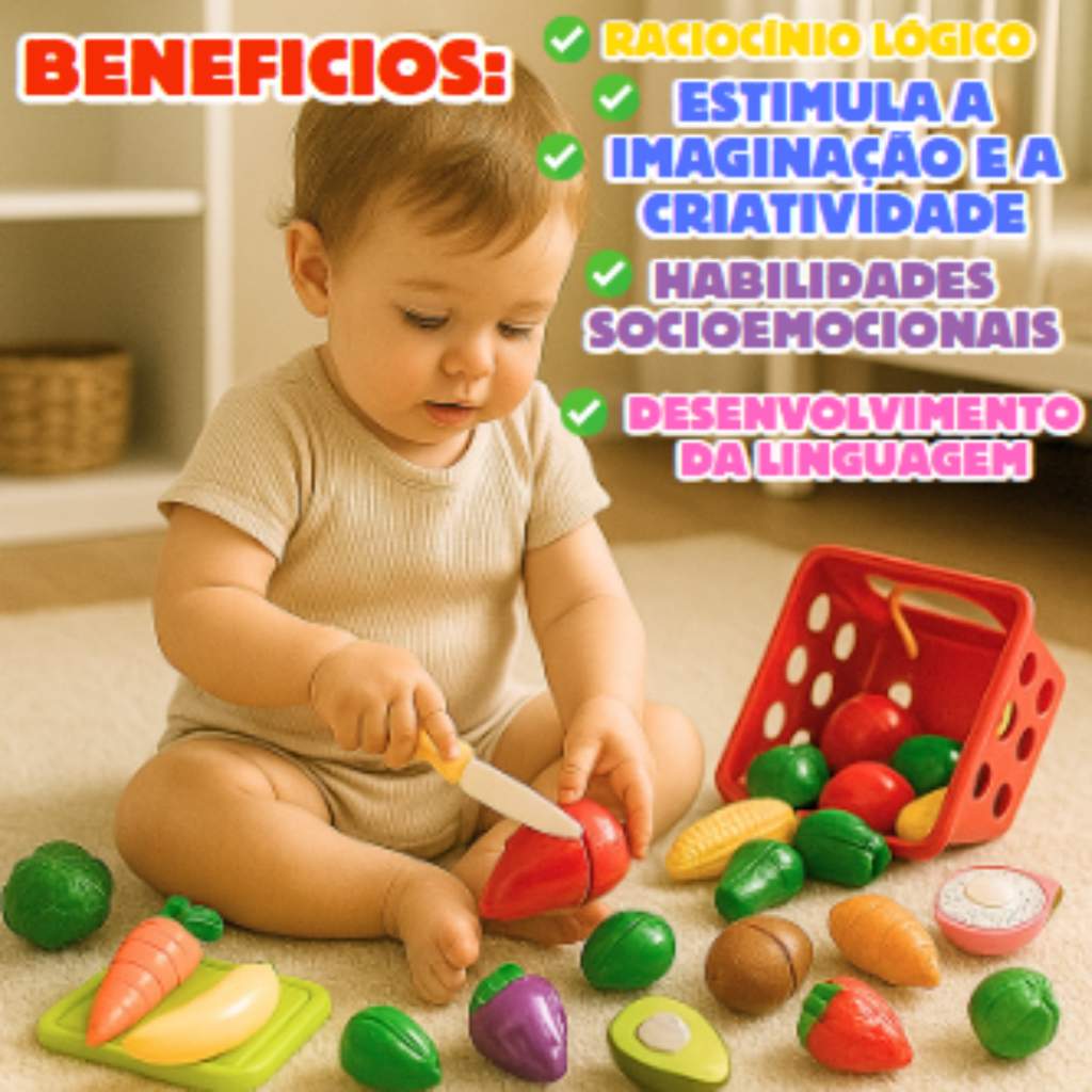 Kit Comidinha Velcro 13 Frutas e Legumes Sortidos Com e Sem Velcro Faz de Conta Menino e Menina