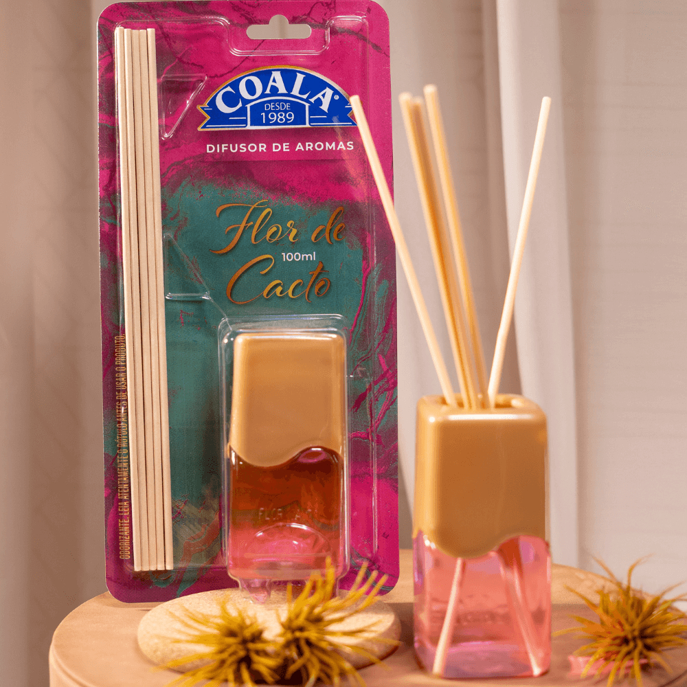 Coala Difusor de Aromas Flor de Cacto Coala Difusor de Aromas é um excelente aromatizador de ambientes, mantendo o perfume por mais tempo. Além de garantir o aroma, o jogo de varetas que acompanha o produto compõe com o frasco e decora o ambiente com design moderno. Com a variedade de fragrâncias é possível variar o uso entre os ambientes, garantindo sensações únicas em cada um. O Difusor de Aromas Coala garante uma sensação confortável e duradoura no ambiente. Para ter o melhor resultado no uso, confira algumas dicas: Limpador Perfumado de Ambientes Flor de Cacto Com Coala Essências - Limpador Perfumado de Ambientes Flor de Cacto, seu ambiente vai ficar limpo e com um aroma incrível. Além de poder ser usada em todos os ambientes, a Coala Essências - Limpador Perfumado de Ambientes Flor de Cacto também: - Garante a sensação prolongada de limpeza e bem-estar; - Tem perfume duradouro, - Fragrância agradável. Sabonete Liquido Flor de Cacto 500ml O Sabonete Líquido Flor de Cacto Coala é o que faltava no seu dia-a-dia. Sua fórmula limpa delicadamente sua pele, deixando seu rosto, suas mãos e seu corpo macio e cheiroso.