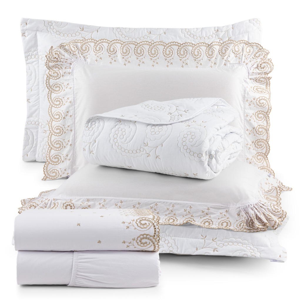Kit Completo 7 Peças 100% Algodão Queen e King Bordado Mistral