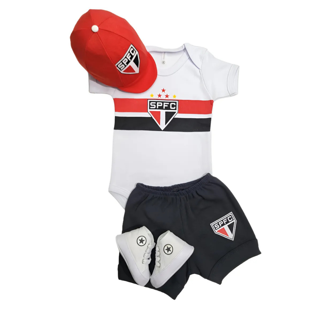 Kit Completo Body Bebê Tri Cores Paulista | Roupa Infantil Torcedor Mesversário