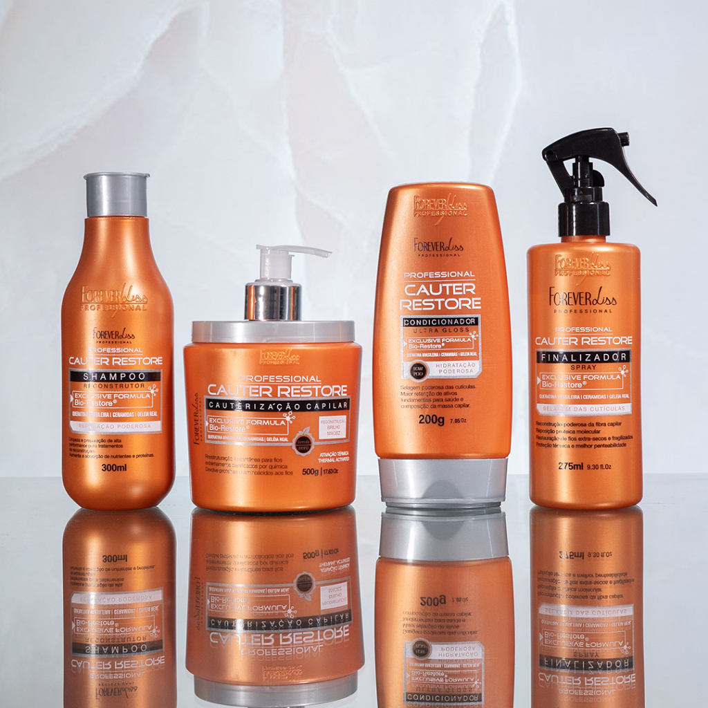 Kit Cauterização Completa Cauter Restore Forever Liss é um tratamento potencializado para reconstruir e repor nutrientes em fios danificados, secos e porosos por excesso de químicas. O Shampoo Cauterização Cauter Restore Forever Liss 300ml promove limpeza suave com preparação de alta performance. A Máscara Capilar Cauterização Cauter Restore 500g especial termo ativada possui extrema habilidade de reposição da massa cortical, reparando e reconstruindo toda área fragmentada por uso exagerado de produtos químicos. O Condicionador Cauterização Cauter Restore 200g promove a estruturação da fibra capilar. O Spray Finalizador Cauterização Cauter Restore Forever Liss 275 chegou para potencializar o tratamento de reconstrução e reposição nutrientes em fios danificados, secos e porosos por excesso de químicas. Indicação: Indicada para todos os tipos de cabelos, principalmente os porosos, danificados e quimicamente tratados. Modo de uso: 01. Com os cabelos úmidos ou molhados aplique o Shampoo Reconstrutor massageando gentilmente o couro cabeludo com a ponta dos dedos até que se forme uma espuma. Enxágue; 02. Repita o processo e deixe agir por 3 minutos; 03. Enxague abundantemente; 04. Aplique a Máscara Cauter Restore e distribua uniformemente, massageando suavemente mecha por mecha enluvando; 05. Deixe agir por 5 minutos e enxágue normalmente; 06. Retire o excesso de água e aplique o Condicionador Cauter, massageando-os mecha a mecha; 07. Deixe agir por 5 minutos; 08. Enxágue completamente; 09. Borrife o Spray Finalizador Cauterização Cauter Restore Forever Liss nos cabelos ainda úmidos no comprimento e nas pontas. Não é necessário enxaguar. Contém: 01 - Shampoo Cauterização Cauter Restore Forever Liss 300ml 01 - Máscara Capilar Cauterização Cauter Restore 500g 01 - Condicionador Cauterização Cauter Restore 200g 01 - Spray Finalizador Cauterização Cauter Restore Forever Liss 275ml Precauções: Manter em temperatura ambiente, em local seco e ao abrigo de luz. Uso externo adulto. Em caso de contato acidental com os olhos, enxaguar abundantemente. Havendo irritação, suspenda o uso. Caso a irritação persista, procure orientação médica. Não ingerir. Manter fora do alcance de crianças. Principais Dúvidas: 01. Qual o pH do Kit Cauterização Completa Cauter Restore Forever Liss? R. O pH do shampoo é de 4,5 - 5,5 da Máscara é 3,8 - 5,2 e o Condicionador é 4.0 a 5.0 02. O Kit Cauterização Completa Cauter Restore Forever Liss entra em qual etapa do cronograma capilar? R. A máscara entra na etapa de reconstrução do cronograma capilar. 03. Quantas vezes posso utilizar o Kit Cauterização Completa Cauter Restore Forever Liss na semana? R. O shampoo e condicionador podem ser utilizados diariamente. A máscara em cabelos muito danificados pode ser utilizada 1x na semana. Cabelos saudáveis a cada 15 dias. Para um cabelo que necessita de reconstrução, o Spray Finalizador poderá ser usado 1x na semana. 04. Gestantes e lactantes podem utilizar? R. Não há contraindicações, porém em caso de dúvidas o médico deverá ser consultado.