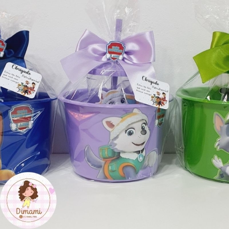 kit completo cinema Patrulha canina 10 baldes 1,5l + 10 copos 500ml personalizados - lembrancinha de festa infantil