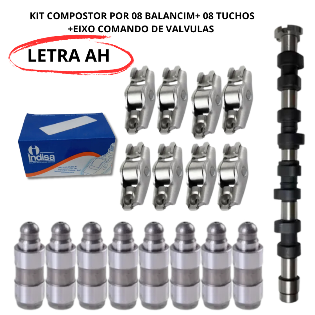 Kit Completo Contém: (17 peças) 01 UN Eixo Comando ( Letra AJ) 08 UN de Tucho Hidráulico 08 UN de Balancim Kit Completo Contém: (17 peças) 01 UN Eixo Comando ( Letra CE) 08 UN de Tucho Hidráulico 08 UN de Balancim Kit Completo Contém: (17 peças) 01 UN Eixo Comando ( Letra AH) 08 UN de Tucho Hidráulico 08 UN de Balancim Kit Completo Contém: (17 peças) 01 UN Eixo Comando ( Letra CJ) 08 UN de Tucho Hidráulico 08 UN de Balancim Unitário 01: (1 peça) 01 UN Eixo de Comando (Letra AJ) Unitário 02: (1 peça) 01 UN Eixo de Comando (Letra CE) Unitário 03: (1 peça) 01 UN Eixo de Comando (Letra AH) Unitário 04: (1 peça) 01 UN Eixo de Comando (Letra CJ) Unitário 05: (1 peça) 08 UN de Tuchos Hidráulico Unitário 06: (1 peça) 08 UN de Balancim OBS: Caso o Comprador não saiba a letra do Eixo, por favor entrar em Contato e encaminhar a Placa do veículo! Atenciosamente Vix Parts.
