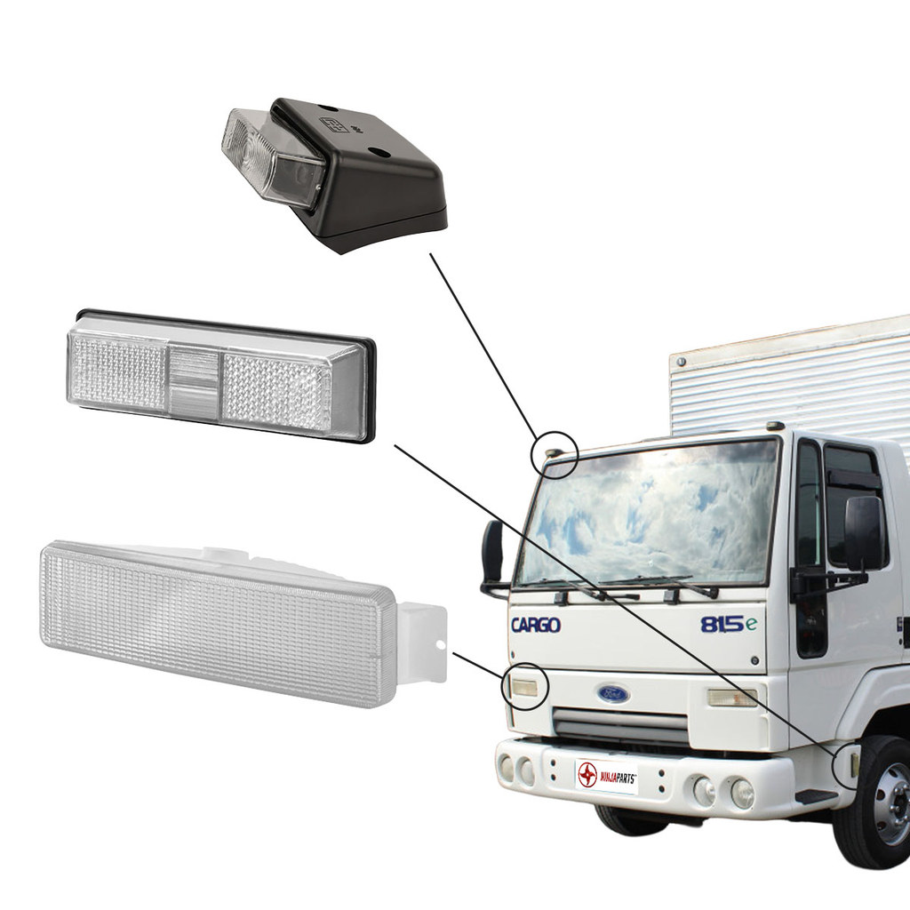 Kit Completo De Lanternas Ford Cargo Cristal Pisca Frontal + Lanterna Teto + Lanterna Lateral