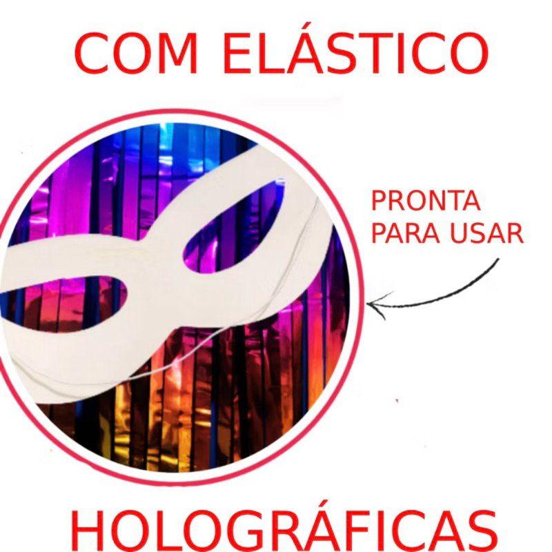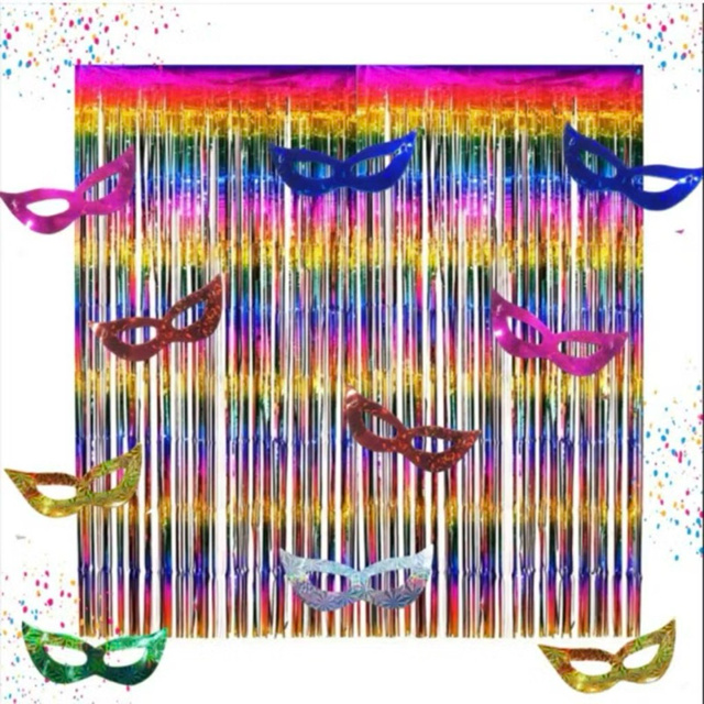 Kit Completo Decoração de Carnaval 2 Cortina Colorida Metalizada + 20 Mascara Holografica Colorida Franja Festa