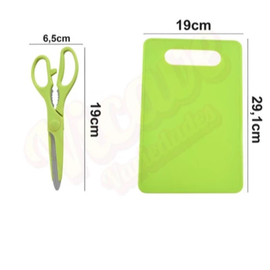 Kit completo jogo utensílios de cozinha 5 peças com tábua em silicone faca tesoura LM