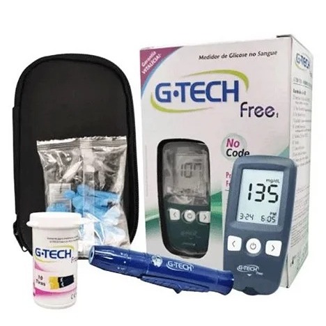 O Medidor de Glicose G-Tech Free é uma solução simples, rápida, segura e acessível para monitorar sua glicemia no dia a dia com precisão e praticidade  . Principais Benefícios: • Sistema No Code: dispensa a codificação manual a cada caixa de tiras, evitando erros frequentes na leitura  . • Resultado em apenas 5 segundos, com amostra mínima de sangue (~0,9 µl), ideal para quem busca agilidade e conforto  . • Armazena até 500 resultados, com cálculo automático de médias de 7, 14 e 30 dias, além de marcadores especiais (pré/pós-refeição) e alertas de hipoglicemia . • Alta acessibilidade com excelente custo-benefício e design moderno, portátil e seguro para uso diário   . Especificações Técnicas: • Sistema: No Code – elimina necessidade de codificação manual das tiras  • Tempo de leitura: ~5 segundos  • Volume de amostra: 0,9 µl (microamostra)  • Memória: até 500 leituras com médias programadas  • Recursos extras: alertas de hipoglicemia, marcações pré e pós-refeição, médias automáticas  • Faixa de medição: de 10 a 600 mg/dL (conforme fonte de mercado)  Conteúdo do Kit (padrão): • 1 medidor G-Tech Free • 10 tiras de teste • 10 lancetas • 1 caneta lancetadora • 1 bateria tipo CR2032 • Estojo compacto, guia de usuário, guia rápido e caderno de autoavaliação  Modo de Uso (sugestão): 1. Lave e seque as mãos. 2. Insira a tira de teste – o aparelho reconhece automaticamente o código (No Code). 3. Lanze suavemente o dedo, aplique a gota de sangue na tira e aguarde o resultado (cerca de 5 segundos). 4. O aparelho armazena o valor e calcula médias automaticamente. Diferenciais que encantam: • Tecnologia avançada No Code, garantindo precisão • Resultado rápido com microamostra de sangue • Boa capacidade de memória e funcionalidades extras (médias, alertas, registros) • Design seguro e intuitivo, ideal para uso pessoal e rotinas de saúde • Ótimo custo-benefício, ideal para quem monitora frequentemente