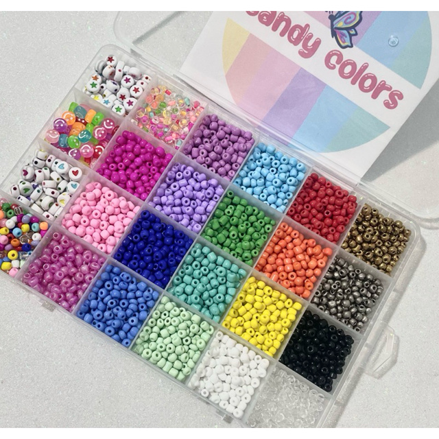Kit completo miçanga de vidro + entremeios + fio de silicone 2000 pçs