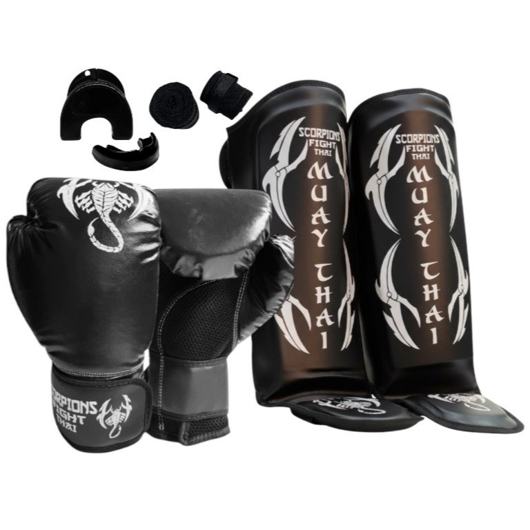 Kit Completo Muay Thai Luva + Caneleira + Bandagem + Bucal + Sacola Brinde