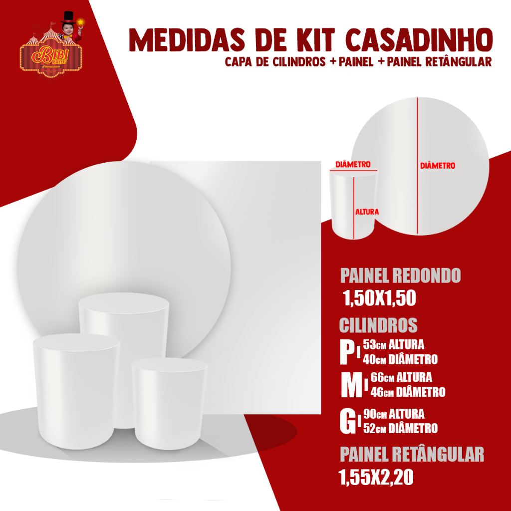 Transforme Sua Festa com Nossos Painéis de Alta Qualidade! Kit Completo Painel Redondo + Trio Cilindro + Painel Romano + Painel Retangular NÃO ACOMPANHA ESTRUTURA Tamanho PAINEL REDONDO: 150cm x 150cm Tamanho PAINEL RETANGULAR: 1,55m X 2,20m Tamanho PAINEL ROMANO: 2,00m x 1,00m Tamanho CILINDRO P: Altura - 53cm x Diâmetro - 40cm Tamanho CILINDRO M: Altura - 66cm x Diâmetro - 46cm Tamanho CILINDRO G: Altura - 90cm x Diâmetro - 52cm Para uma festa ser inesquecível é importante pensar em cada detalhe da decoração, oferecendo um momento único para cada convidado, e pensando nisso a BIBI PAINEIS disponibiliza o melhor Kit decorativo e temático para sua festa, com tecido premium e impressão digital em 4k, lideramos o mercado em qualidade e envio. Planejando um aniversário, casamento ou formatura? Nossos painéis de festa são a escolha perfeita para adicionar elegância e personalidade à sua decoração. Benefícios dos Nossos Painéis Qualidade Premium: Feitos com materiais duráveis e acabamento impecável, nossos painéis garantem uma decoração perfeita durante toda a festa.O material utilizado é Tecido Malha flexível Poliéster com elastano. Possui costura overloque nas laterais, para reforço e evitar que o tecido desfie. Pode ser molhado ou lavado com água e sabão neutro, evite ser exposto ao sol pois secam rapidamente. Design Personalizado: Escolha entre uma ampla variedade de designs. Fácil Instalação: Sistema de montagem simples e rápido, sem complicações. Versatilidade: Adequados para ambientes internos e externos, perfeitos como pano de fundo para fotos e áreas de destaque. Por Que Escolher Nossos Painéis? Inovação no Design: Sempre acompanhando as últimas tendências. DETALHES IMPORTANTES: Temas como: Glitter, Madeira, ripado, dentre outros, são apenas imitações que remetem a sensação do mesmo. Vem pronto para instalação. Alta durabilidade. Imagens em alta resolução (sem borrões ou serrilhado). Cores vivas e vibrantes. O elástico facilita a instalação, sua decoração fica pronta em poucos minutos. Pode ser lavado inúmeras vezes. Não retém líquido, se molhar vai secar rapidamente. Pode ser passado (recomendamos baixas temperaturas). Ótimo caimento. Não possui emendas. PRODUÇÃO E ENVIO Enviamos seu pedido em até 24 horas após a compra. Todos os nossos produtos possuem garantia. DEVOLUÇÃO E TROCA Envie uma mensagem para gente caso tenha algum problema com seu pedido, nossas atendentes estão a todo momento em pronto atendimento para solucionar o mais rápido possível. OBSERVAÇÕES IMPORTANTES Atente-se aos prazos de produção e entrega informados no anúncio. Sinta-se à vontade para nos enviar uma mensagem caso tenha alguma dúvida. Estaremos prontos para te responder. BIBI PAINEIS AGRADECE E BOAS COMPRAS!