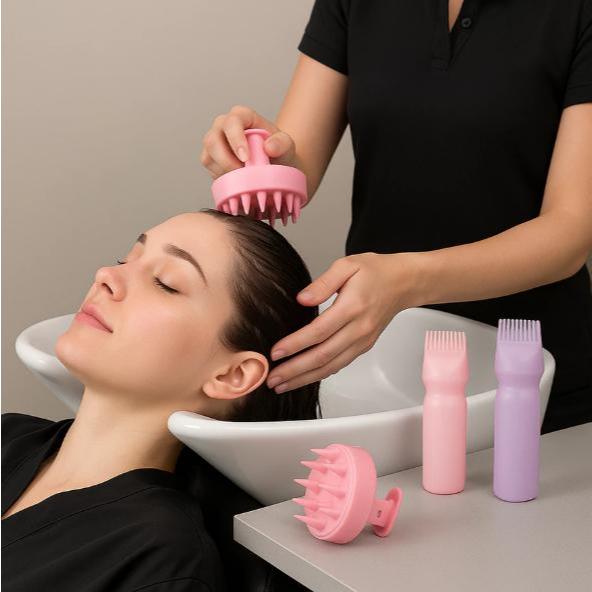 Kit Completo para Coloração Capilar: Aplicador com Pente + Massageador de Silicone - Cabelos Vibrantes e Saudáveis