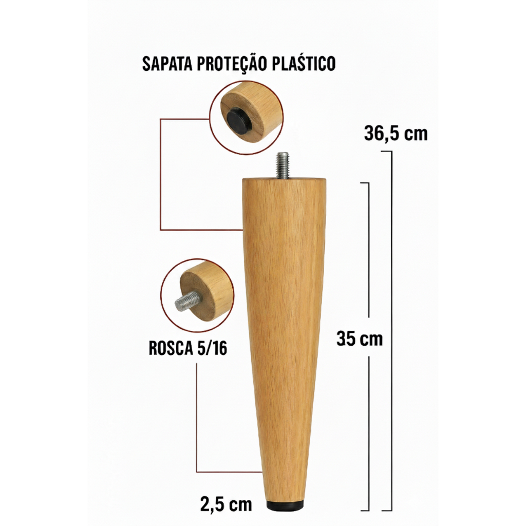 🎉 Kit Completo Pés Palito 35 cm + Chapinhas + 16 Parafusos para Fixação