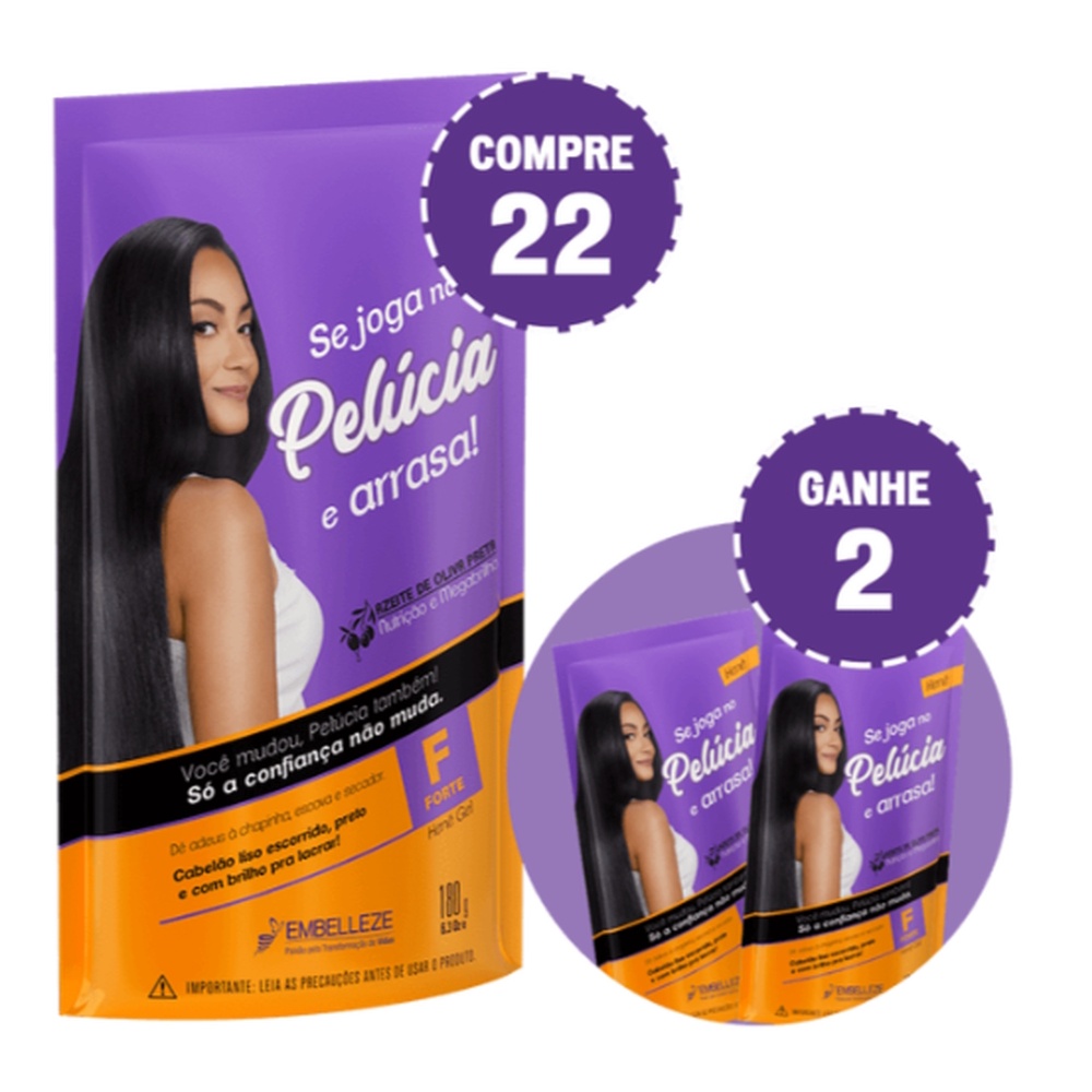 Kit Compre 22 e Ganhe 2 Henês Pelúcia Pouch Forte INDICAÇÃO Antes de usar, faça a Prova de Toque. Aplique uma pequena quantidade do produto no antebraço e atrás da orelha. Deixe na pele por 60 minutos, lavando-a em seguida. Após ter lavado, aguarde 24 horas. Se nesse período surgir irritação na pele, coceira ou ardência no local ou na proximidade, fica provada a hipersensibilidade. Nesse caso, NÃO use o produto. AÇÃO Alisa e tinge de preto. ATIVOS Azeite de Oliva Preto. BENEFÍCIOS Óleo de oliva tem ação hidratante e nutritiva que ajuda na flexibilidade natural e brilho dos cabelos. RESULTADO Cabelão liso escorrido, preto e com brilho pra lacrar! MODO DE USO Como Aplicar 1 - Aplique o Henê Pelúcia, mecha por mecha. 2 - Puxe com pente fino, da raiz às pontas, esticando bem os fios. Cubra com uma touca plástica por 60 minutos (o efeito será o mesmo se o tempo for maior). 3 - Enxágue bem os cabelos e lave-os com shampoo e condicione. 4 - Se você quer um efeito bem liso, pode fazer uma escova. E se você quer um penteado ondulado, é só deixar os cabelos secarem em bobs. 5 - Aconselhamos 2 aplicações por semana até atingir o resultado desejado. COMPOSIÇÃO AQUA (ÁGUA), ZEA MAYS STARCH (AMIDO), MANIHOT UTILISSIMA STARCH (AMIDO DE MANIHOT UTILISSIMA), AMMONIUM CHLORIDE (CLORETO DE AMÔNIO), PYROGALLOL (PIROGALOL), CUPRIC CHLORIDE (CLORETO CÚPRICO), SODIUM BENZOATE (BENZOATO DE SÓDIO), PARFUM (PERFUME), FERROUS SULFATE (SULFATO FERROSO), SODIUM HYDROXIDE (HIDRÓXIDO DE SÓDIO), OLEA EUROPAEA FRUIT OIL (ÓLEO DE OLIVA), CI 77266 (CORANTE PRETO 77266), PROPYLENE GLYCOL (PROPILENOGLICOL), PHENOXYETHANOL (FENOXIETANOL). TIPOS DE CABELO Indicado para todos so tipos de cabelos.