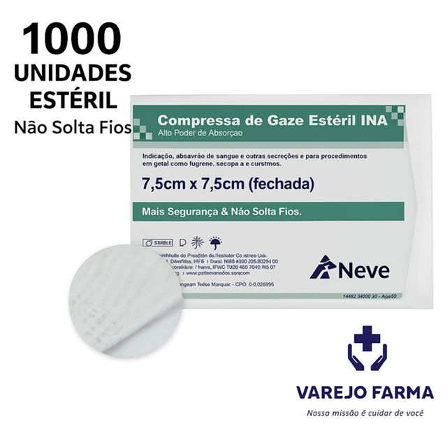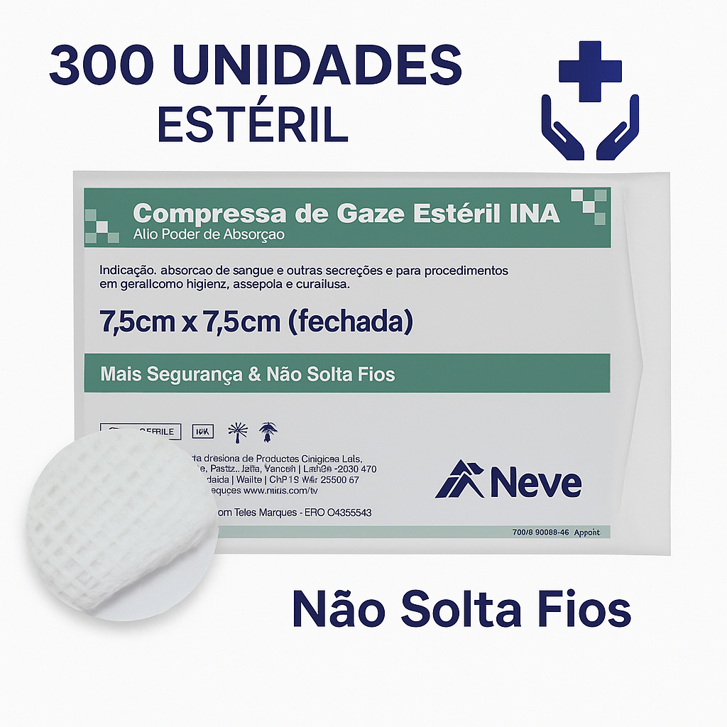 Enviamos com Nota Fiscal. A Compressa de Gaze Estéril 13 Fios é um item médico essencial feito de algodão, com alta densidade (13 fios/cm²) para maior absorção de líquidos e sangue, usada para limpeza, cobertura de feridas, assepsia e em curativos, especialmente em procedimentos que exigem mais segurança e não soltam fios, sendo disponível em tamanhos como 7,5x7,5, em embalagens com 10 unidades. Características Principais: Fios/cm²: 13 fios por centímetro quadrado, indicando alta densidade e absorção. Material: 100% algodão, alvejado e purificado, isento de impurezas. Tecnologia: Tipo crochê (Safe), que garante que não solta fios, sendo mais seguro e confortável. Estéril: Esterilizada por E.T.O. (Óxido de Etileno) para uso em procedimentos invasivos e em contato com feridas. Contém KITs com: 15 Pacotes com 10 Compressas (TOTAL 150 COMPRESSAS); 20 Pacotes com 10 Compressas (TOTAL 200 COMPRESSAS); 30 Pacotes com 10 Compressas (TOTAL 300 COMPRESSAS); - Enviaremos a marca de acordo com nossos estoques, mas todas tem as mesma características, mudando apenas o fabricante e permanecendo a mesma QUALIDADE, EFICACIA e SEGURANÇA. Para que Serve: Absorção de sangue, secreções e líquidos em geral. Limpeza e cobertura de feridas e curativos. Assepsia da pele e mucosas antes de procedimentos. Confecção de gazes para procedimentos cirúrgicos. Diferença para Outras Gazes: Quanto mais fios (9, 11, 13), maior o poder de absorção e resistência, sendo a 13 fios ideal para casos que demandam maior segurança, como pós-operatórios e feridas abertas.