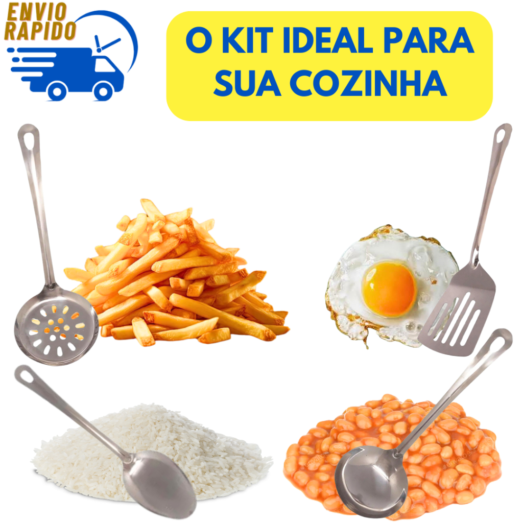 Bem Vindo à Zip Utilidades Kit Concha, Escumadeira, Colher Arroz, Espátula Vazada Inox para Casas Restaurante Buffet 04 Unidades Envio Imediato!!!!! Contem: 1 Concha 1 Escumadeira 1 Colher Arroz 1 Espátula Vazada Eleve a sua experiência culinária com o nosso Kit de Talheres de Aço Inox, composto por uma concha de feijão, uma colher de arroz, uma escumadeira e uma espátula vazada. Fabricados com aço inoxidável de alta qualidade, esses utensílios são projetados para oferecer durabilidade, funcionalidade e um toque de elegância à sua cozinha. Características do Kit: Material: Aço inoxidável 18/10, conhecido pela sua resistência à corrosão e durabilidade. Design Ergonômico: Cada peça possui um cabo ergonômico que proporciona um manuseio confortável e seguro. Acabamento Polido: Superfícies polidas que conferem um visual elegante e facilitam a limpeza. Versatilidade: Ideal para uso diário e em ocasiões especiais, complementando qualquer conjunto de utensílios de cozinha. Facilidade de Limpeza: Todos os utensílios são seguros para máquinas de lavar louça, garantindo praticidade na manutenção. Componentes do Kit: Concha de Feijão: Capacidade Ideal: Perfeita para servir feijões, sopas e caldos com precisão e facilidade. Design Prático: Bordas arredondadas para evitar derramamentos. Colher de Arroz: Tamanho Generoso: Ideal para servir porções de arroz de maneira eficiente. Cabo Ergonômico: Proporciona conforto ao servir grandes quantidades. Escumadeira: Perfeita para Frituras: Ideal para retirar alimentos fritos do óleo, permitindo o escoamento do excesso de gordura. Design Funcional: Furos estrategicamente posicionados para um escorrimento rápido e eficiente. Espátula Vazada: Versatilidade na Cozinha: Ideal para virar e servir alimentos delicados, como peixes e omeletes. Cabo Resistente: Proporciona controle e segurança durante o uso. Benefícios: Durabilidade: O aço inoxidável de alta qualidade garante que os utensílios resistam ao uso intensivo sem apresentar sinais de desgaste. Higiene: Superfícies não porosas impedem a proliferação de bactérias e a absorção de odores. Elegância: O design sofisticado e o acabamento polido fazem deste kit uma adição estilosa à sua cozinha. Praticidade: Fáceis de limpar, esses utensílios são seguros para uso em máquinas de lavar louça. Utilização: Este Kit de Talheres de Aço Inox é perfeito para cozinheiros de todos os níveis. Seja para preparar uma refeição do dia a dia ou um jantar especial, estes utensílios oferecem a funcionalidade e a elegância que você precisa. Transforme suas habilidades culinárias e adicione um toque de sofisticação à sua cozinha com este conjunto de alta qualidade.