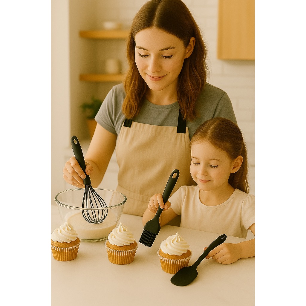 Kit Confeiteiro 3 Peças de Silicone 29 cm – Fouet, Pincel e Espátula | Resistente ao Calor