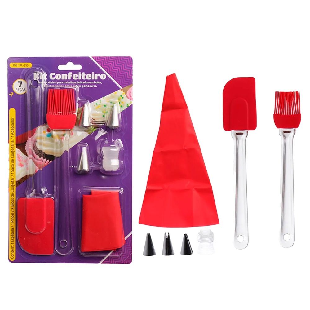 Kit Confeiteiro Confeitaria Saco de Confeitaria Bico De Inox Espátula Pincel Silicone Confeita Bolo