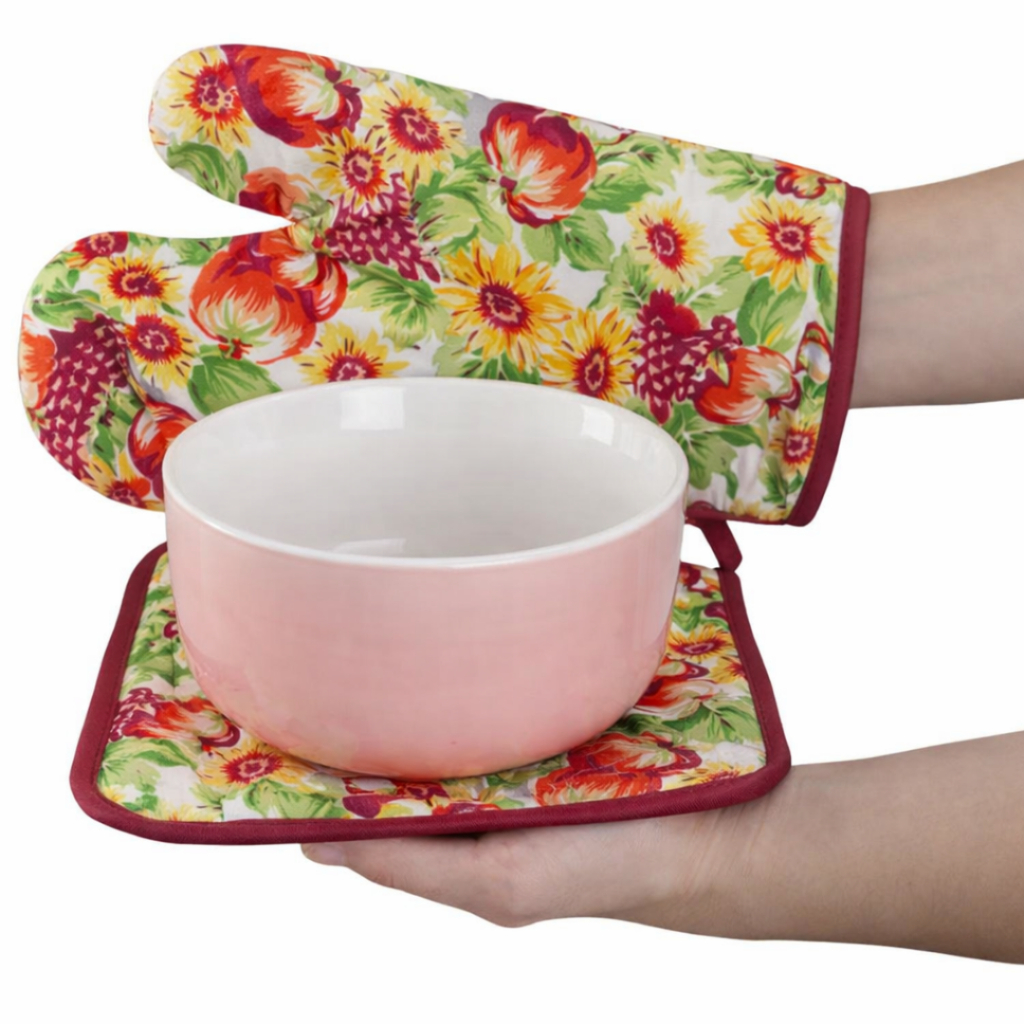 Kit Conjunto 4 Peças Luva Térmica Pegador Panela Quente Cozinha Descanso Forno Segurança Utensilio Doméstico