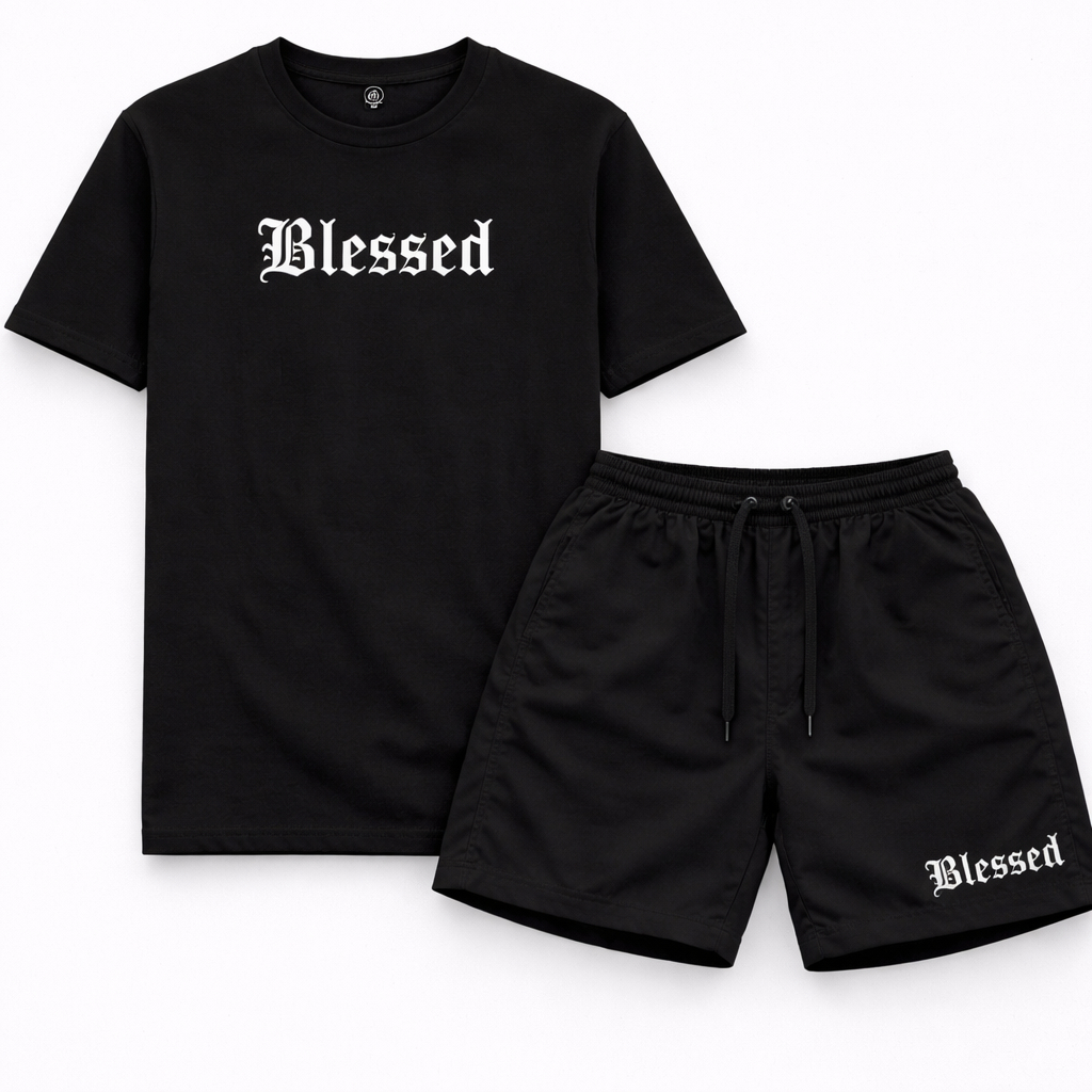 Kit Conjunto Camiseta Blessed Algodão + Bermuda Masculina Tectel Streetwear Premium Conjunto Verão Casual Moda Urbana