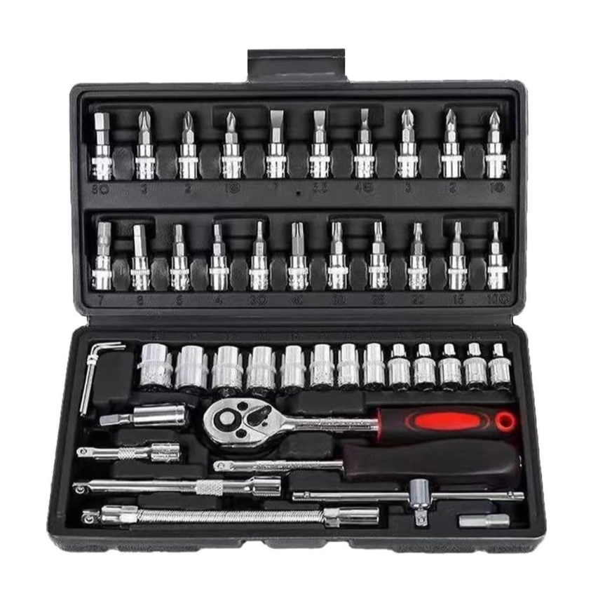 Kit Conjunto de Catraca 46 Peças Chave Soquete Aço Chave Multiuso Fenda Bit Chave Allen Profissional