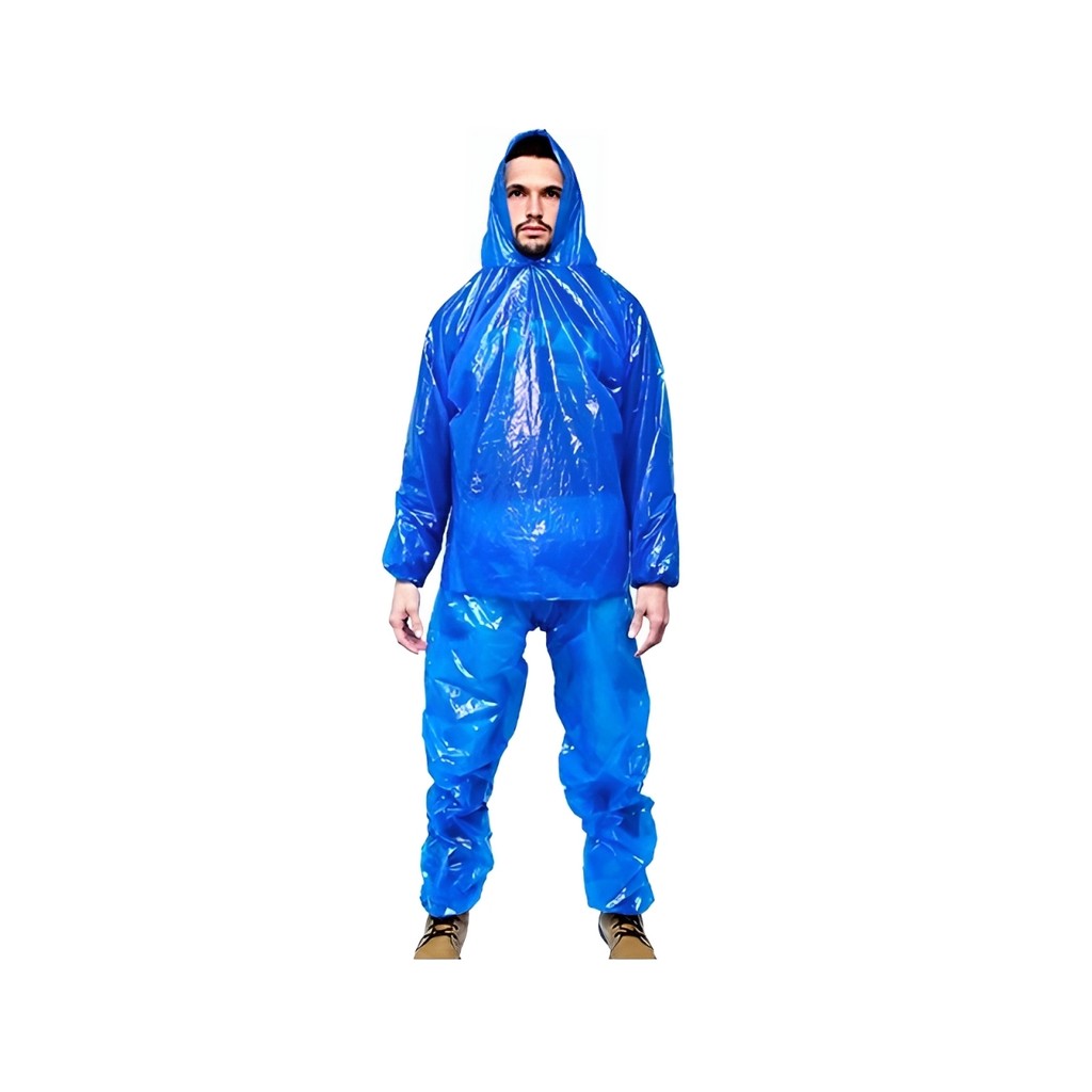 Calça de segurança confeccionada em polietileno com ajuste na cintura, contra umidade proveniente de operações com uso de água. Bata de segurança confeccionada em resina de polietileno. Proteção do tronco do usuário contra umidade proveniente de operações com uso de água. Indicado para: Proteção do tronco e das pernas do usuário contra umidade proveniente de operações com uso de água. *** TAMANHO ÚNICO *** Calça Comprimento calça 113 cm Largura da perna 33 cm Cintura de 33-53 cm Bata Comprimento 66 cm Toráx 67 cm Braço comprimento 66 cm Braço largura 25 cm Composição: Polietileno Acabamento: Contra umidade Tam. disponíveis: Único Cor: Azul Oceano / Branco = Incolor