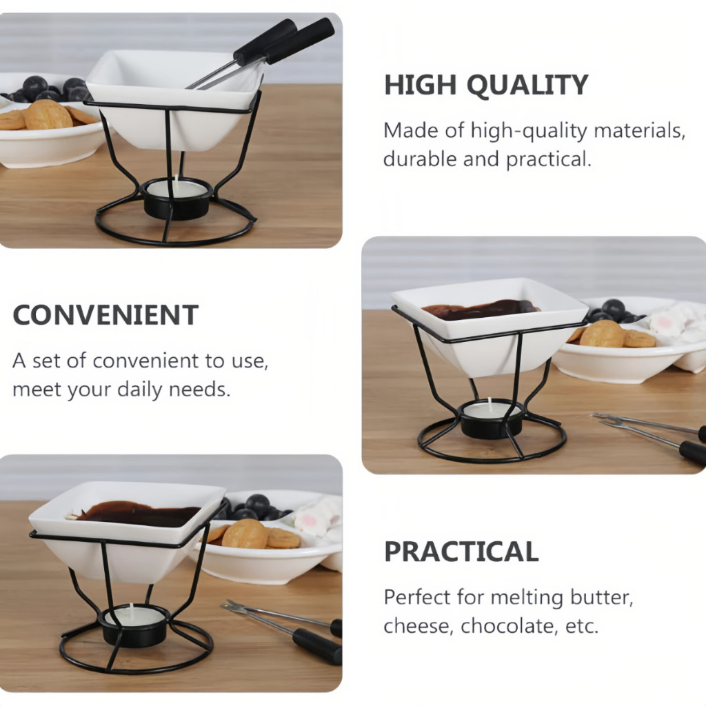 Kit Conjunto De Fondue Panela Cerâmica Antiaderente Chocolate Queijo Carne 2 Pessoas
