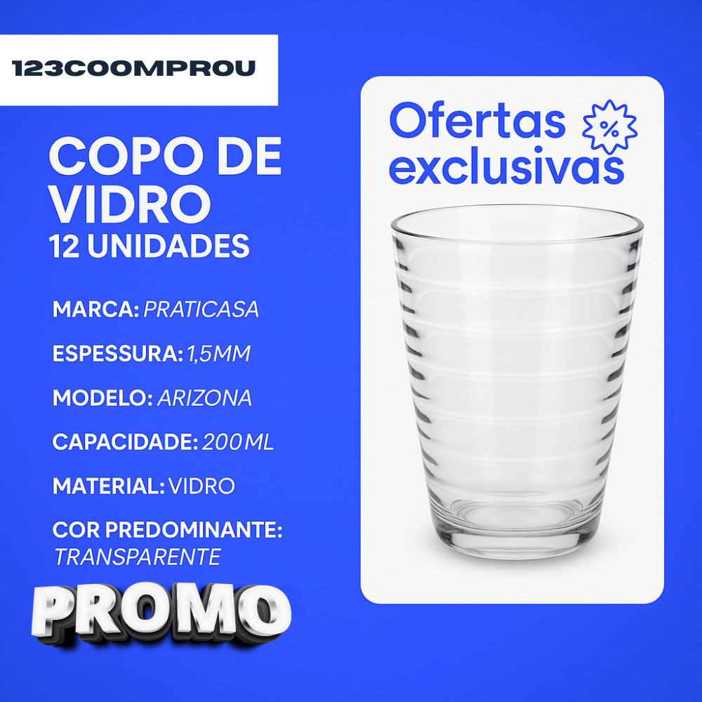 Kit Completo: 6 Copos e 5 Potes de Vidro Redondos Total de peças : 11 peças Este kit incrível é perfeito para quem busca praticidade e elegância no dia a dia. Composto por 6 copos Arizona de vidro resistente e um conjunto de 5 potes de vidro redondos, você terá tudo o que precisa para servir suas bebidas e armazenar alimentos de forma segura e estilosa. Detalhes dos Produtos: Copos Arizona: Quantidade: 6 copos Material: Vidro resistente Capacidade: 200 ml Potes de Vidro Redondos: Quantidade: 5 potes Material: Vidro livre de BPA Tamanhos: 1 tigela de 800 ml 1 tigela de 500 ml 1 tigela de 330 ml 1 tigela de 250 ml 1 tigela de 220ml Cores das tampas : Sortidas (enviadas aleatoriamente)