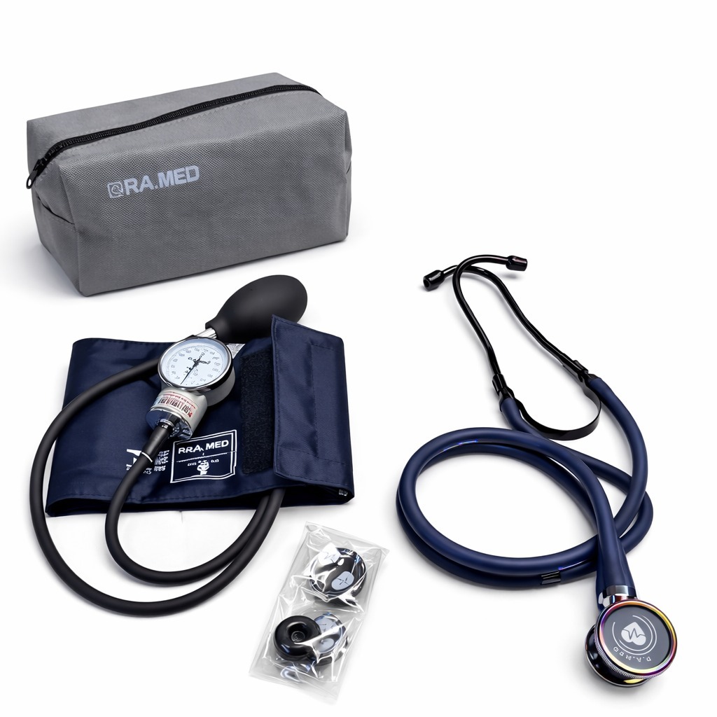 Kit Conjunto Esfigmomanômetro Aparelho de Pressão + Estetoscópio Rappaport Duplo Black