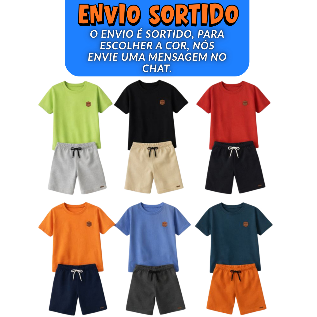 Kit Sortido 10 Peças de Roupas Infantil Masculino – 5 Camisetas + 5 Bermudas – Conjuntos Básicos de Verão para Meninos As camisetas são manga curta, confeccionadas em 100% algodão de alta qualidade, com detalhe em tag marrom, proporcionando estilo e durabilidade. Já as bermudas são produzidas em moletinho leve, com cadarço funcional no cós, oferecendo conforto e ajuste perfeito. Disponível nos tamanhos 2 ao 12, é a opção ideal para quem busca praticidade, economia e qualidade em roupas infantis. Características principais: Kit com 10 peças (5 camisetas + 5 bermudas) sortidas Camisetas macias e respiráveis Bermudas em moletinho com cadarço no cós Qualquer dúvida nos chame no Chat!