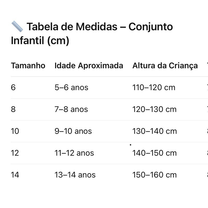 Conjunto Infantil Esportivo – Estilo Futebol Deixe os pequenos jogarem com conforto e estilo! Este conjunto infantil esportivo é ideal para crianças que amam futebol e atividades ao ar livre. Detalhes do Produto: • Conjunto com camisa + short • Design moderno com cores vibrantes e número estampado nas costas • Modelagem confortável, ideal para treinos, jogos e uso casual • Tecido leve, respirável e de secagem rápida • Não limita os movimentos da criança Material: • Tecido esportivo de alta qualidade • Toque macio e excelente durabilidade Indicado para: • Futebol • Educação física • Lazer e dia a dia • Uso escolar e recreativo Disponível em tamanhos infantis (Consulte a tabela de medidas antes da compra) Produto confortável, estiloso e perfeito para acompanhar a energia das crianças!