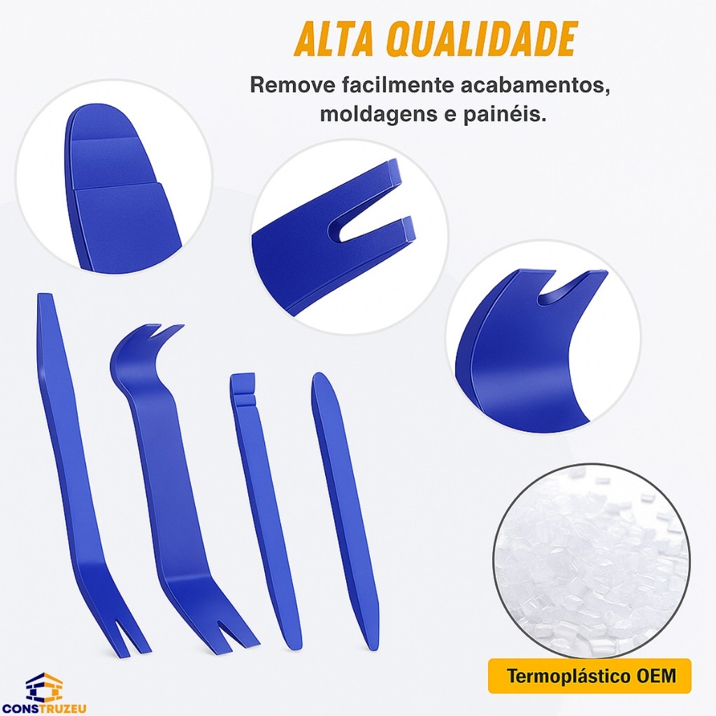Kit 9 Espátulas de Remoção Veicular – Ferramenta Profissional de Alta Qualidade As espátulas possuem design ergonômico e pontas reforçadas, permitindo remover painéis, forros, molduras, presilhas, som automotivo e acabamentos internos sem causar danos às peças. Tenha mais praticidade e segurança nos seus trabalhos automotivos com este kit completo de cinco espátulas de remoção. Ideal para instalações, desmontagens e manutenções veiculares, o conjunto foi desenvolvido para oferecer precisão e acabamento profissional. Fabricadas com material de alta resistência, garantem durabilidade, flexibilidade e eficiência no dia a dia de oficinas, instaladores e entusiastas automotivos. Características do Produto: Kit com 5 espátulas variadas para diferentes tipos de remoção Compatível com todos os tipos de veículos Evita riscos e quebras nas peças Uso profissional ou doméstico Material resistente e durável Ideal para quem busca resultado limpo, rápido e profissional em qualquer tipo de desmontagem veicular.