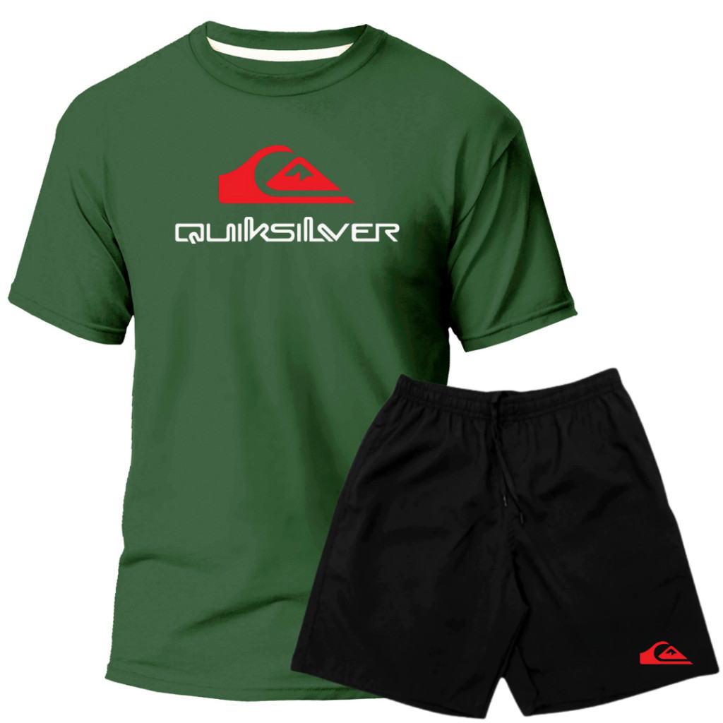 Kit Conjunto Masculino Quicksilver 100% Algodão 30,1 Camiseta Manga curta Short Tectel com Elastano