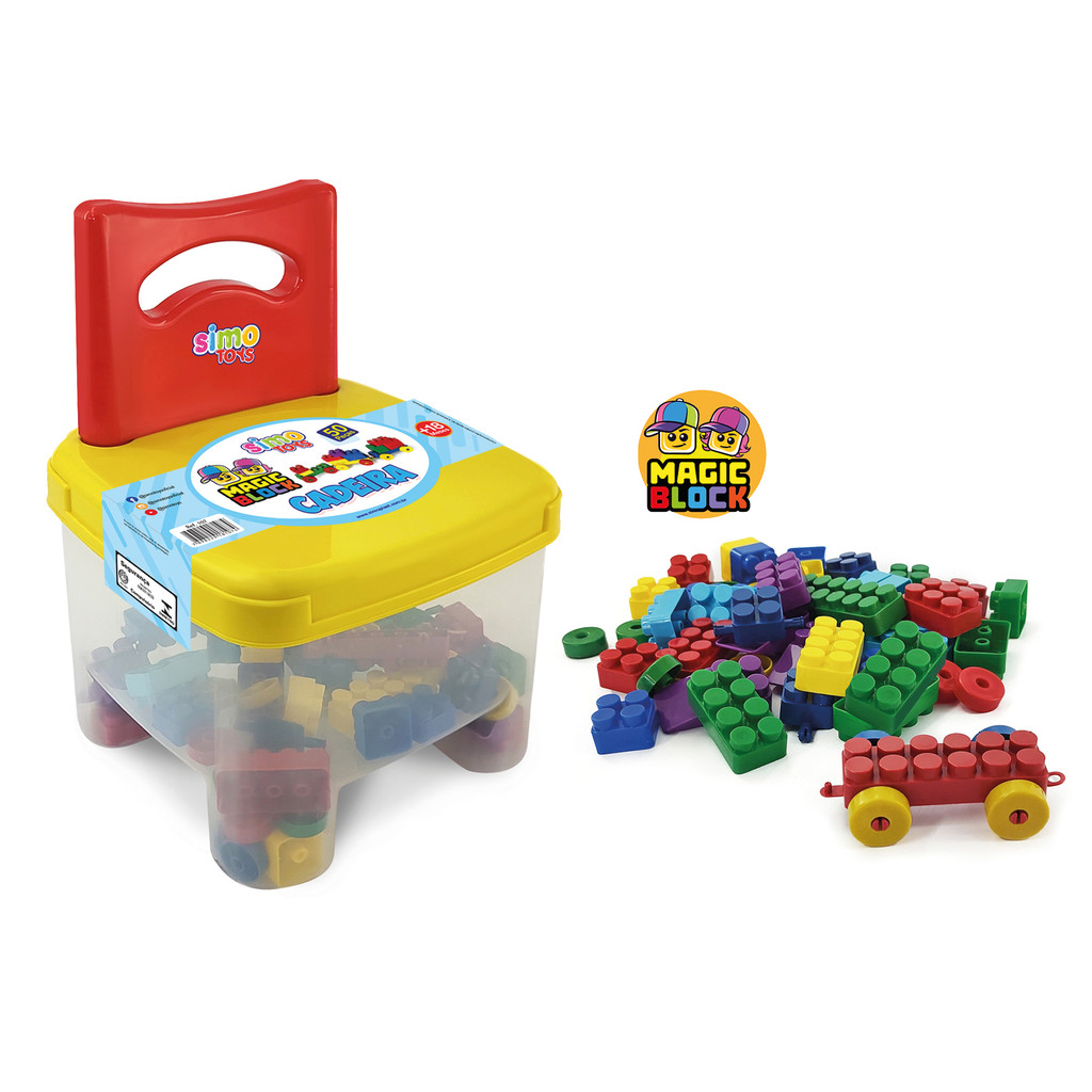 KIT CONJUNTO MESA INFANTIL COM CADEIRA + CADEIRA BAU BLOCOS 50 PEÇAS SIMO TOYS