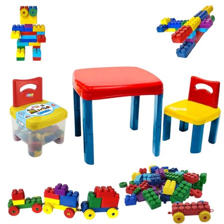 Kit Completo para Aprendizado e Diversão Transforme o tempo livre das crianças com esse conjunto que une criatividade, conforto e organização. Conteúdo do kit: 1 mesinha infantil com design moderno e resistente 1 cadeira infantil 1 cadeira baú com compartimento interno 50 blocos de montar coloridos em tamanhos e cores variados Ideal para brincar, montar, desenhar, estudar e estimular o raciocínio lógico e motor. Medidas aproximadas: Mesa 39 cm altura x 43 cm largura x 43 cm comprimento Cadeira 35 cm altura x 25 cm largura x 25 cm comprimento Cadeira baú 35 cm altura x 25 cm largura x 25 cm comprimento Principais benefícios: Design alegre e cores vibrantes Plástico resistente em polipropileno Estrutura firme e segura Produto nacional, durável e fácil de limpar Estimula a coordenação motora e a criatividade