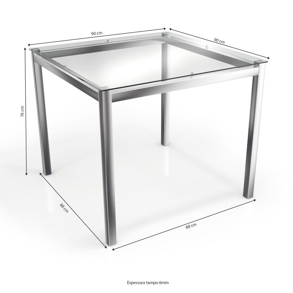 Kit Conjunto Mesa Quadrada 4 Cadeiras 90 x 90 cm Sala de Jantar Cozinha Vidro Metal Cromado Preto