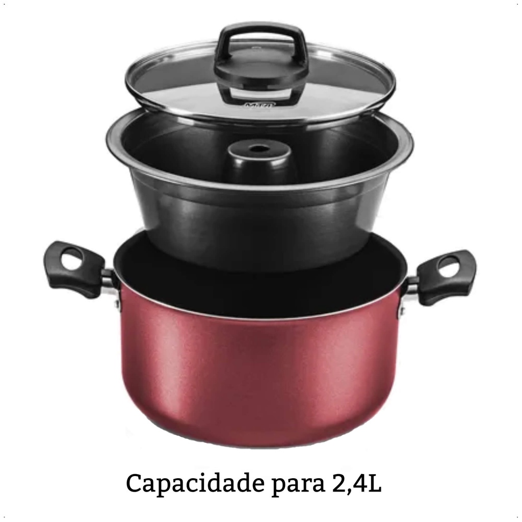 Kit Conjunto Panela para Pudim 3 em 1 Revestimento Antiaderente 3,2L Cereja TVT MTA - 8923