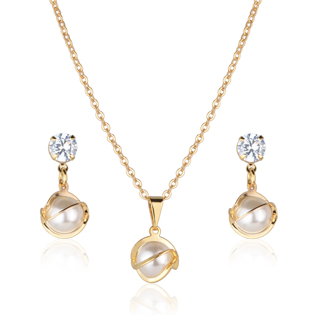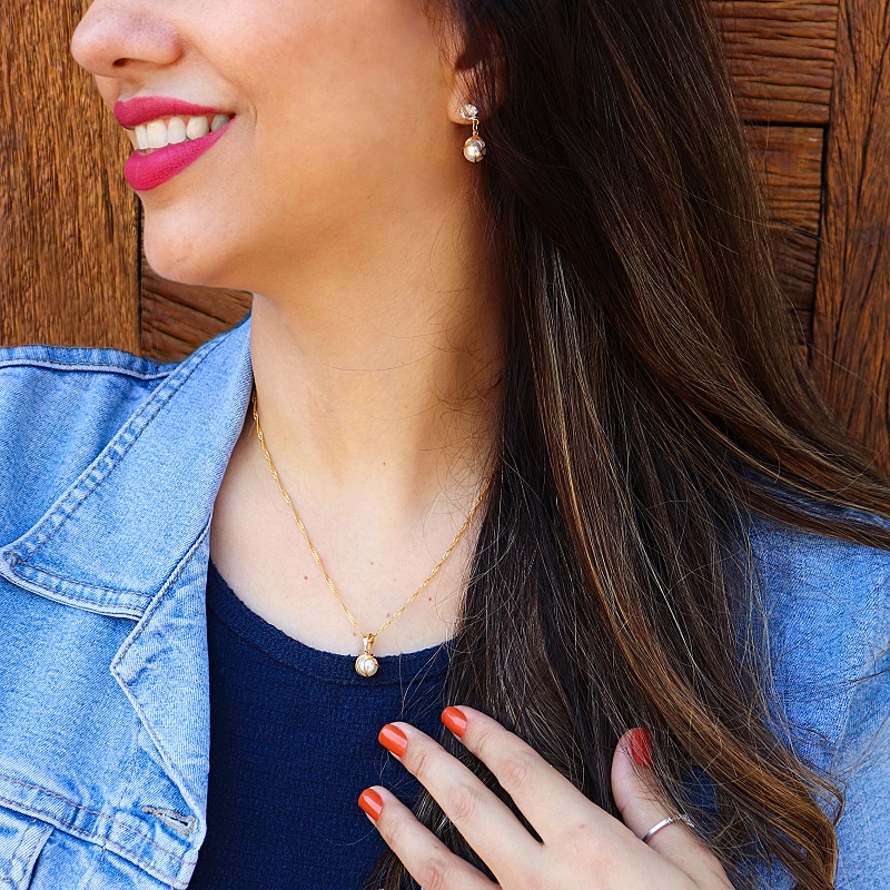 Kit Conjunto Semijoia Com Pérola Banhado a Ouro 18K Original Presente Moda CJ0028