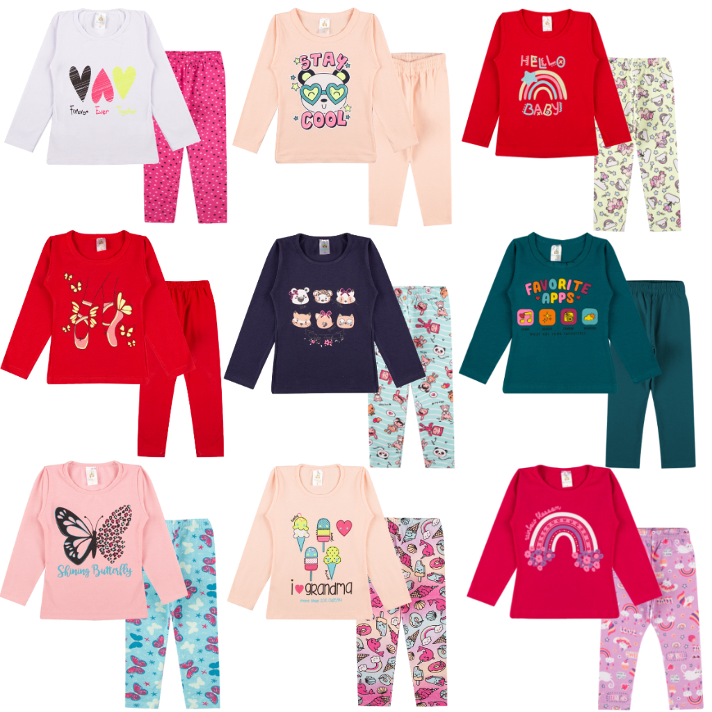 Kit Sortido de Conjuntos Verão ou Pijama Curto para Bebê Meninas! 👧✨ Uma coleção encantadora, versátil e confortável para sua pequena princesa. Conjunto Verão ✅ Camisetas e Regatas: Meia malha 100% algodão, e gola redonda com reforço. ✅ Shorts e Saias: Algodão com poliéster, e com elástico confortável na cintura. Pijama Curto ✅ Estampas variadas e divertidas, que proporcionam estilo para sua pequena. ✅ Confeccionados 100% algodão, para garantir maior conforto durante o sono. Conjunto Inverno ✅ Tecido Confortável: 60% algodão e 40% poliéster, garantindo maciez e conforto. ✅ Ajuste Perfeito: Ribana nos punhos e na barra para maior proteção contra o frio. ✅ Moletom Peluciado: Conforto e aquecimento extra nos dias frios. Sugestão de Tamanho: Indicado para 6 a 12 meses 👉 Consulte a tabela de medidas nas imagens, ou na guia de tamanho da Shopee. IMPORTANTE! ⚠️ Não há opção de escolha dos modelos. ⚠️ Os modelos enviados serão sortidos conforme a disponibilidade em estoque. Envios em 24 horas 🚛 - Para todos os pedidos realizados antes das 13h. Garanta já o seu kit e proporcione o máximo de conforto e estilo para sua pequena princesa