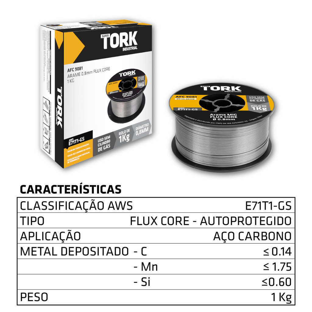 Kit Consumíveis Arame Para Solda Mig Uso Sem Gás 0,8mm 1kg + 2 Esquadro Magnético 12Kg Tork