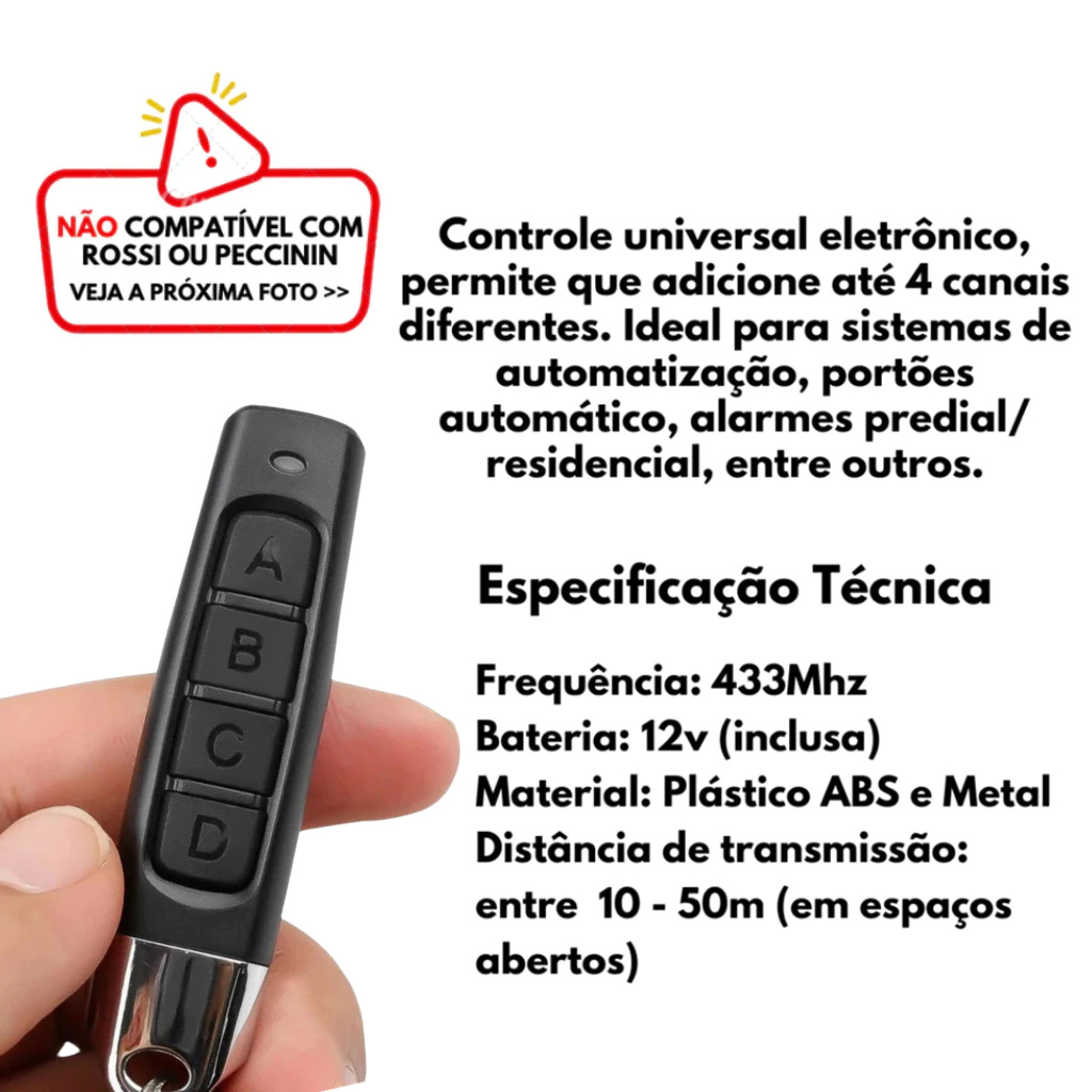 KIT Controle ORIGINAL de Portão Eletrônico Remoto Compatível 433Mhz automático Garagem 4 Botões Residencial universal