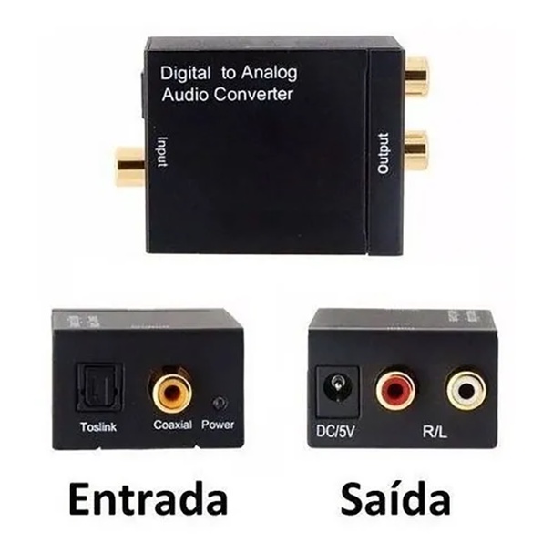 DESCRIÇÃO VEJA COMO É SIMPLES A INSTALAÇÃO : 1. A TV possui saída de áudio digital Óptico(Toslink) e o aparelho de som possui entrada RCA (branco e vermelho) ou Auxiliar (P2). Ligará a saída(OUT) de áudio da TV na entrada do conversor(IN) e ligará a saída(OUT) do conversor na entrada(IN) do aparelho de som. 2. Selecione a saída óptica na sua TV, como a saída principal nas configurações de áudio. 3. Ainda nas configurações de áudio da TV, vai haver uma opção chamada "formato de áudio", por padrão ela vem selecionado "Dolby Atmos", altere e escolha a opção "PCM". Pronto, vc instalou o seu conversor. O conversor de áudio digital óptico e coaxial para áudio analógico rca, permite que transmita o som das TVs mais modernas que possuem apenas saída de áudio digital para aparelhos de som e home theater que possuem apenas entrada de áudio analógica rca. Ele converte sinais de áudio digital coaxial ou Toslink para áudio L / R analógico. Neste anúncio o Conversor vai acompanhado de um Cabo de Áudio Digital Óptico, um Cabo de Áudio Analógico Rca, mais uma Fonte de Energia Bivolt para ligar na tomada. Especificações (Conversor): - Entrada de áudio: coaxial ou Toslink de áudio digital; - Saída de áudio: L/R de áudio; - Entrada Conector de áudio: 1 x Toslink, 1 x RCA (coaxial); - Saída conector de áudio: 2 x RCA (R/L); - Potência de entrada: AC 100-240 V 50/60 Hz; - Saída: DC 5 V 1A; - Taxa de Amostragem: Suporta taxa de amostragem a 32,44.1,48 e - Peso: 78 gramas;- Medidas: 5,1 x 4,1 x 2,6 cm;- Transmissão de 24 bits de entrada S / PDIF nos canais esquerdo e direito;- Fornece transmissão sem interferência eletromagnética; - Simples e fácil de usar. Especificações (Cabo Toslink): - Extensão: 1 Metro Conteúdo da embalagem: - 1 x Conversor de Áudio Digital para Analógico - 1 x cabo usb de limentacao - 1 x Manual - 1 x Cabo de Áudio Digital Óptico 2.0M