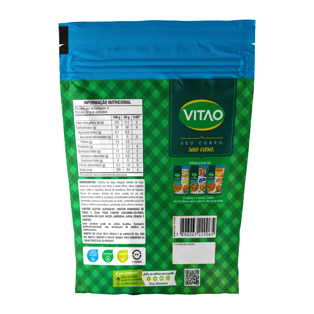 Kit Cookies Banana Integral Zero Açúcar Vitao 120G - 4 Unidades.